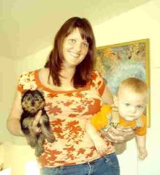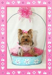Hi Lisa: We bought one of your Yorkies this past July and just wanted to send you a few pictures of her. Coco has stolen our hearts and we absolutely adore her ! She follows me everywhere when I am at home and is my constant companion. She likes nothing better than to curl up on your lap and sleep (when she's tired) otherwise she is constantly in motion. Wish I had ½ the energy she does! Thank you so very much for giving us such a beautiful, smart, and loving companion. She knows no strangers and loves everyone & everything. Coco has brought so much joy to our family; we wouldn't know what to do without her! She is like another child to my husband and I and we spoil her rotten. One of the pictures I am attaching is of her crawling into her toy box to find a favorite toy of hers... all of these were taken within the last 2 weeks. Again... thank you for giving us such a beautiful and lively puppy - we will always be grateful. Sincerely, Kathleen Pansys cute daughter |