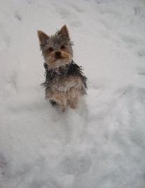 Samson is an absolute delight. At 9 1/2 weeks he is still well under 3 pounds, eats great and always goes outside. He is beginning to walk on the lead with his new mates, but does not like the ice, snow, cold or wind. Neither do I, but he will adjust. He is very smart, during the night. I could not have asked for a more perfect Yorkie pup. Thank you so much. I think he resembles the puppy pics of his mom that I loved so much on your website. Hoping you and your family have a healthy and happy new year.'09 Beth Ann and Steven in New York |