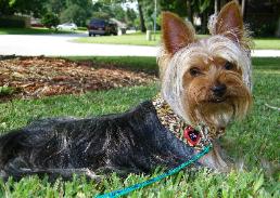 This is from one of Nala's kids: Ms. Lisa, She is doing great! She went the whole weekend without having any accidents. Now I just need to get her to go to the door to ask to go out. I have been crate training her but have read that Yorkies are a challenging breed to house break. If you have tips that any of your clients recommend please let me know. We went through the first part of obedience school and she did well. She obeys sit, stay, wait, and drop it. She also comes (most of the time:-) when I call her.I weighed her yesterday and she is up to 3 lbs 6oz. at 8 months, but she thinks she is a giant. Maria in Jacksonville, Florida |