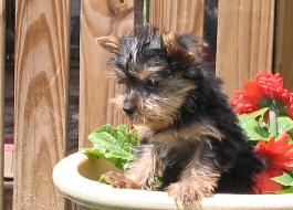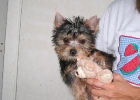 Yorkies are born with short hair which grows longer, silky, and changes to the adult colors as they mature. I am so happy they don't shed, dont have dog dander, and are non allergenic! |